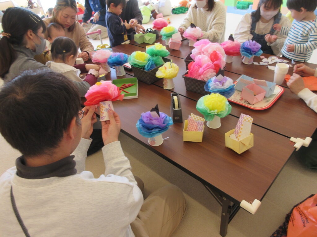 おひなさまバージョンの「グーチョキパーでなにつくろう」を一緒にやってくれたり、