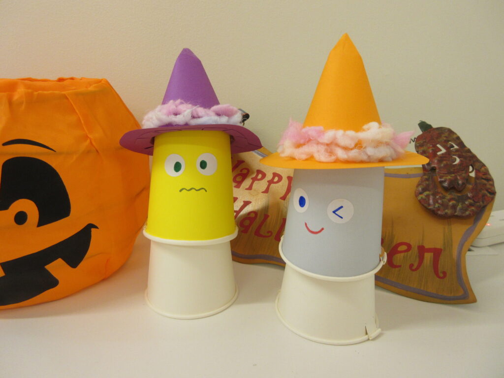 紙コップにペタペタ、描き描き・・・